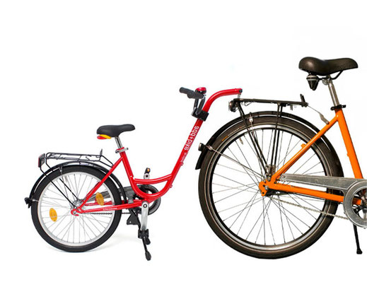 Dieses Fahrrad/Anhänger/Tandem-Kombi ist ideal für kleine Urlauber, die noch selbst noch nicht so lange Touren schaffen, aber gern selbst fahren möchten. Die Kinder können nach Lust und Laune selbst entscheiden, ob sie fleißig mit treten oder lieber den Fahrtwind genießen und die Füße einfach auf den Pedalen ruhen lassen wollen. Der perfekte Begleiter für längere Erkundungstouren mit der ganzen Familie.
